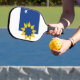 Pickleball Paddle mit einem Design mit der Flagge von Topeka, Kansas. Eine blau-weiße Flagge mit einem gelben Sternsymbol