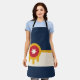 Schürze mit einem Design mit der Fahne von Tulsa, Oklahoma. Eine beige und marineblaue blaue Flagge mit goldenem Osage-Schild, die einen roten Kreis und einen beigen, sechsspitzen Stern enthält