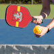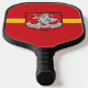Pickleball-Paddel mit Design mit der Flagge von Vilnius, der Stadt der Hauptstadt Litauen; rote Fahne mit gelbem Streifen und Wappen mit zwei goldenen Löwen mit einem Schild in der Mitte