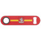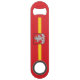 Flaschenöffner mit Design mit der Flagge von Vilnius, Hauptstadt Stadt Litauen; rote Fahne mit gelbem Streifen und Wappen mit zwei goldenen Löwen, die einen Schild in der Mitte halten