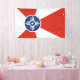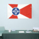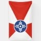 Dieses Design zeigt die Stadtflagge von Wichita, die größte Stadt im US-Staat Kansas. Wichita ist der Sitz des Landkreises von Sedgwick Landkreis. Wichita befindet sich im südlich-zentralen Kansas am Arkansas Fluss. Es wurde zu einem Ziel für Rinderfahrten von Texas nach Kansas Eisenbahnen, die ihm den Spitznamen "Cowtown" verdienten.