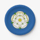 Paper Plate mit Design mit einer Fahne des historischen Landkreises von Yorkshire in England, Großbritannien; Fahne mit einer weißen Rose auf einem blauen Feld