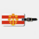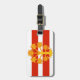 Gepäckmarke mit Design mit einer Fahne des historischen Landkreises Westmorland in England, Großbritannien; weiß-rot gestreifte Flagge mit goldenem heraldischem Apfelbaum in der Mitte