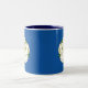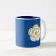 Tasse mit Design unter der Flagge eines historischen Landkreises von Yorkshire in England, Großbritannien; Flagge mit weißer Rose auf blauem Feld