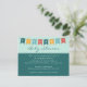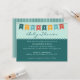 Die niedliche Jungenbabyduscheneinladung, die eine Schnur der bunten Flaggen mit "ihr kennzeichnet, ist ein Junge!" Buchstaben, helle Jade und dunkle Jadeeinladung konfrontieren. Streifeneinladungsrückseite. Personifizieren Sie dieses Mutter-zu-ist Einladung mit Ihren Wunschinformationen, indem Sie den zur Verfügung gestellten Text ersetzen.