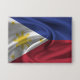 Knopf mit der Fahne der Philippinen in Wavy-Stoff-Design. Dieses Design zeichnet sich durch die philippinischen Fahnen-Farben und das Design mit einem schönen, schwingenden Material texturierten Effekt aus. Dieses Flaggendesign ist eine großartige Möglichkeit, Ihnen zu zeigen, dass Sie stolz sind, aus den Philippinen zu kommen.