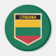 Die litauische Nationalflagge ist in eine Schildform eingebettet, in der der Ländername über der Flagge und im Schild angebracht ist.