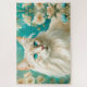 Türkisfarbener Hintergrund, alte weiße Blume und eine schöne Flamme Lynx Point Siamese Katz KI Kunst von minx267