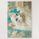 Türkisfarbener Hintergrund, alte weiße Blume und eine schöne Flamme Lynx Point Siamese Katz KI Kunst von minx267