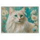 Türkisfarbener Hintergrund, alte weiße Blume und eine schöne Flamme Lynx Point Siamese Katz KI Kunst von minx267