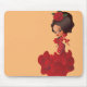 Flamenco chibi kawaii Mädchen in rotem floridfarbenem Kleid in Halbdrehung. Mascot-Cartoon-Abbildung