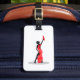 Flamenco Dancer bedrückte Design in rot und schwarz. Sie hält einen Ventilator und ist stehend auf einer Plattform.
