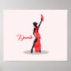 Flamenco Dancer bedrückte Design in rot und schwarz. Sie hält einen Ventilator und ist stehend auf einer Plattform.