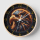 Majestätischer Adler mit feurigen Flammen, die den Kopf umklammern und Power, Kraft und Mut symbolisieren, während er durch den Himmel hochsteigt. mit Golduhrzahlen