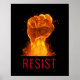 Die Wandkunst zum Thema soziale Gerechtigkeit zeigt eine große Faust von Feuer und Flammen mit anpassbarem "RESIST"-Text in roter, moderner Schriftart auf schwarzem Hintergrund.