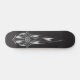 Flaming Gothic cross with skulls is set on black background and makes one wicked skateboard.