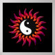 Flammen in Gold, Rot und Blau schwingen aus dieser Yin-Yang-Sonne in einem schönen, positiven Design.