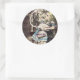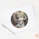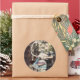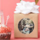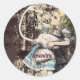 Musikalische Noten aus der antiken Notenmusik-Alice im Wunderland mit einem Flamingo Blush Pink und Powder Blue Classic Round Sticker. Ideal zum Anziehen eines braunen, als Geschenk umhüllten Kraftpapiers.