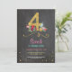 Flamingo 4. Geburtstag Party helle Tafel einladen. ÄNDERN SIE DEN TEXT, UM IHREN PARTY- & Rückdrucktitel ANZUG.