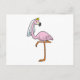 Flamingo als Bride bei Hochzeit mit Veil Postkarte