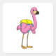 Flamingo als Schüler mit Schultasche Quadratischer Aufkleber