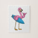 Flamingo als Surfer mit Surfboard Puzzle
