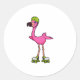 Flamingo as Skater with Roller skates & Helmet Runder Aufkleber
