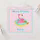 Rosa Flamingo auf einem Pool Ring auf einem rosa Hintergrund Geburtstagskarte. Entworfen von Jacqueline. Personalisiert von dir. Alle Aspekte des Designs können auf Anzug bearbeitet werden. Wenn Sie Hilfe benötigen, schicken Sie mir einfach eine Nachricht.