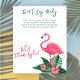 Das Design der Baby-Dusche ist mit rosa Flamingo mit üppig grünen Palmenblättern und tropischen Hibiskus-Blume ausgestattet. "Aloha Baby" Ein tropisches Blumenmuster mit schwarzer Hintergrundfarbe zieht die Rückseite der Karte hoch. Lasst uns Flamingle spielen!