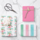 Fügen Sie Ihren Geschenken eine tropische Touch mit diesen festlichen Packpapier-Blättern! Mit drei aufeinander abgestimmten Designs: einem Flamingo am Strand unter einer Palme, einem Cocktail, einem hübsch rosa Hintergrund und einem tropischen Streifen in türkisfarbenen, rosa, gelben und grünen Farbtönen.