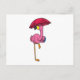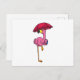 Flamingo beim Regen mit Regenschirm Postkarte