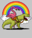 Flamingo Bird Riding T-Rex Dinosaur Regenbogen Design für Fantasy-Liebhaber.