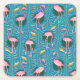 Flamingo Birds 20s Deko Ferns Pattern Blue Gold Rechteckiger Pappuntersetzer