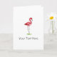 Eine vertikale Grußkarte, die eine einzigartige Abbildung eines in einem kleinen Wasserbecken stehenden Flamingos in lebhaften Farben darstellt. Personalisieren Sie mit Ihrem eigenen Text außen und innen. Die Größe, der Stil, die Farbe und die Textposition des Schriftartes können durch Klicken auf "Anpassen" geändert werden. Sie können auch den Text löschen, wenn Sie eine leere Karte bestellen möchten. Du hast die Wahl.