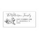 Schöne Typografie schmückt diese Rücksendeadresse Briefmarke zusammen mit einem eleganten zeichn eines Flamingos und Raum für Sie zu merken, wenn Ihre Familie gegründet wurde. Spaß für Neuvermählte oder verheiratete Paare und ihre Familien. Praktisch für die Versendung von Briefen und Paketen!