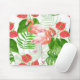 Aquarellmuster Design mit Flamingo-Blume und Vögeln, Monstera und Palmen-Blätter.