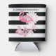 Das Produktdesign zeichnet sich durch einen Flamingo mit kaleidoskopischen Paisley-Mustern in Rosatönen über schwarzem Streifen-Hintergrund aus. Dieses tropische Vogeldesign mit personalisiertem Text macht moderne und einzigartige Dosenkühler.