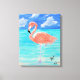 Die gedruckte Reproduktion eines Flamingos am Strand ist eine Reproduktion eines originalen Acrylgemäldes des mittel- und spirituellen Künstlers Gigi T. Sunshine. Starke Leinwand, 16"x20" geeignet zum Hängen ohne Rahmen