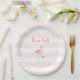 Sweet Mom and baby flamingos auf einer trendigen rosa und weiß gestreiften Papiertüte mit "It's a girl" Text.