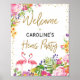 Flamingo Hens Party Tropical Floral Begrüßungszeic Poster