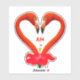 Flamingo Herz & Hibiskus Blume mit Monogramm Aufkleber