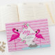 Modernes flamingo Grafik Gästebuch. Personalisieren Sie mit dem Namen, dem Buchtyp und dem Veranstaltungsjahr Ihrer eigenen Mutter. Ideal für Gäste, die Ratschläge teilen, sodass es ein großartiges Mémento mit dem Baby Dusche Party ist. Teil der rosa Flamingo Grafik Sammlung. © Graphic Artwork and design by Sarah Trett. www.sarahtrett.com für www.mylittleeden.com