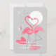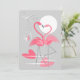 Ein Paar rosa Flamingos mit geschwungenen Halsbändern, die eine Herzform bilden, stehen auf einem mondbeleuchteten Strand im Meer. Stilvolles, romantisches Design mit Retro-Touch in rosa, grauen und weißen Farbtönen mit Farbwechsel. Ein individuell anpassbares Design für Sie, um mit Ihrem eigenen Text, Bildern und Ideen zu personalisieren. Ein originelles digitales Kunstbild.