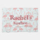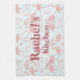 Dieses "Flamingo Liebe" Küchentuch zeigt Paare von rosa Flamingos auf einem weichen blauen Hintergrund. Ihre Köpfe neigen sich zu einem Herz. Das Design ist mit rosa Federn geschmückt. Passen Sie Ihren Namen noch heute an! Kunstwerk erstellt von: AMBillustrations http://www.etsy.com/shop/AMBillustrations/