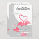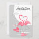 Ein Paar rosa Flamingos mit geschwungenen Halsbändern, die eine Herzform bilden, stehen auf einem mondbeleuchteten Strand im Meer. Stilvolles, romantisches Design mit Retro-Touch in rosa, grauen und weißen Farbtönen mit Farbwechsel. Ein individuell anpassbares Design für Sie, um mit Ihrem eigenen Text, Bildern und Ideen zu personalisieren. Ein originelles digitales Kunstbild.