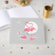 Ein Paar rosa Flamingos mit geschwungenen Halsbändern, die eine Herzform bilden, stehen auf einem mondbeleuchteten Strand im Meer. Stilvolles, romantisches Design mit Retro-Touch in rosa, grauen und weißen Farbtönen mit Farbwechsel. Ein individuell anpassbares Design für Sie, um mit Ihrem eigenen Text, Bildern und Ideen zu personalisieren. Ein originelles digitales Kunstbild.