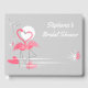 Ein Paar rosa Flamingos mit geschwungenen Halsbändern, die eine Herzform bilden, stehen auf einem mondbeleuchteten Strand im Meer. Stilvolles, romantisches Design mit Retro-Touch in rosa, grauen und weißen Farbtönen mit Farbwechsel. Ein individuell anpassbares Design für Sie, um mit Ihrem eigenen Text, Bildern und Ideen zu personalisieren. Ein originelles digitales Kunstbild.