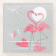 Ein paar rosa Flamingos mit gewölbten Hals, die eine Herzform bilden, stehen auf einem sonnigen Strand im Meer. Stilvolles, romantisches Design mit einer Retro-Touch in rosa, grauem und weißem Farbschema mit farblich verändertem Hintergrund. Ein individualisierbares Design für Sie, um mit Ihrem eigenen Text, Bildern und Ideen zu personalisieren. Ein originelles digitales Kunstbild.