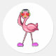 Flamingo mit Kopfhörer und Herz Runder Aufkleber