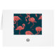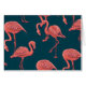Vector Muster mit handgezeichneten Flamingos in lebendiger Korallenfarbe auf dunkelblauem Hintergrund.